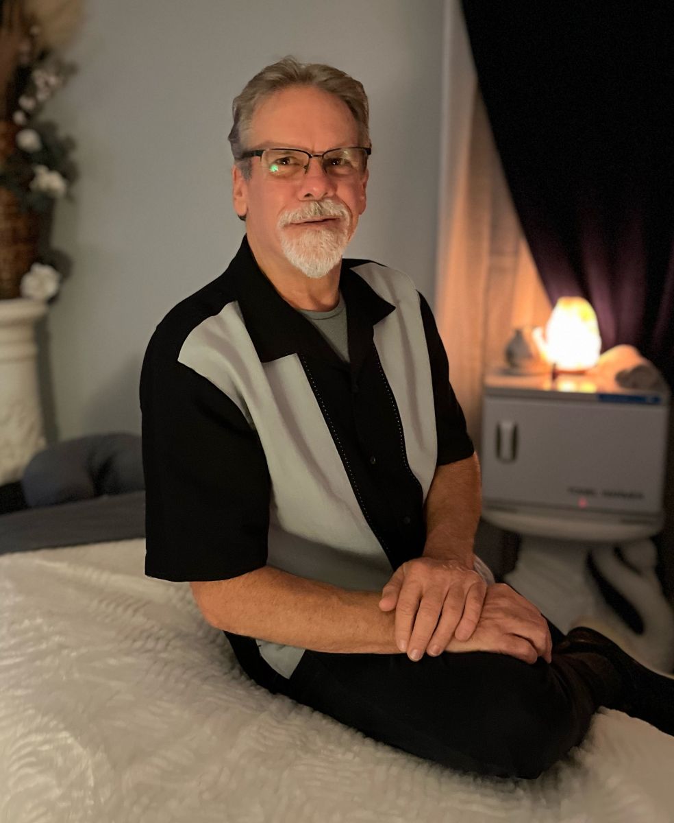 Roger Dickinson is a Licensed Massage Therapist who believes true healing involves the integration of body, mind, and spirit. His approach is rooted not only in training, but in lived experience. Diagnosed nearly a decade ago with Diffuse Idiopathic Skeletal Hyperostosis (DISH)—a painful and progressive condition that traditional medicine considers incurable—Roger was advised to undergo multiple spinal fusions. In 2019, he was facing the implantation of a permanent rod from his neck to his pelvis.